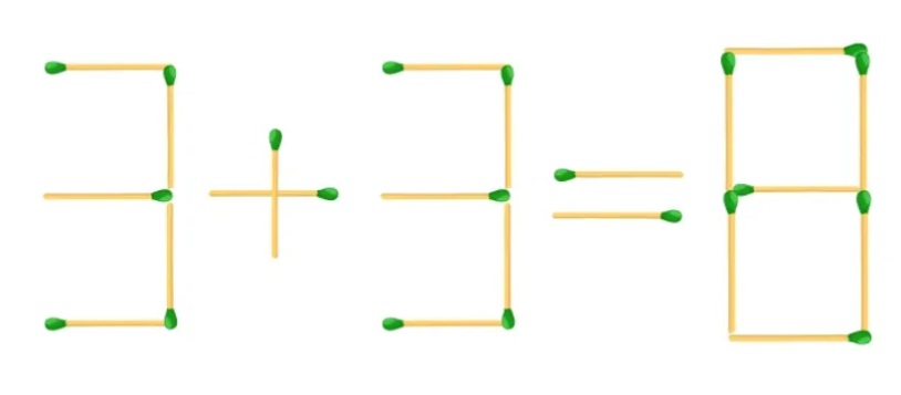 În fața ochilor mei se află o egalitate incorectă făcută din chibrituri: 3+3=8. Pare aproape imposibil să o repari, dacă nu poți elimina sau adăuga nimic. Totuși, există o soluție, și nu este deloc evidentă.