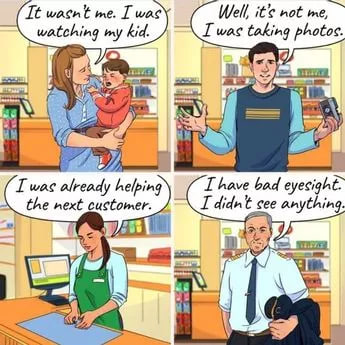 Tot ce trebuie să faci este să te uiți la imaginea de mai jos și să identifici care dintre persoanele din magazin a furat portofelul cuiva. Trei dintre persoanele din imagine spun adevărul, dar una dintre ele minte.
