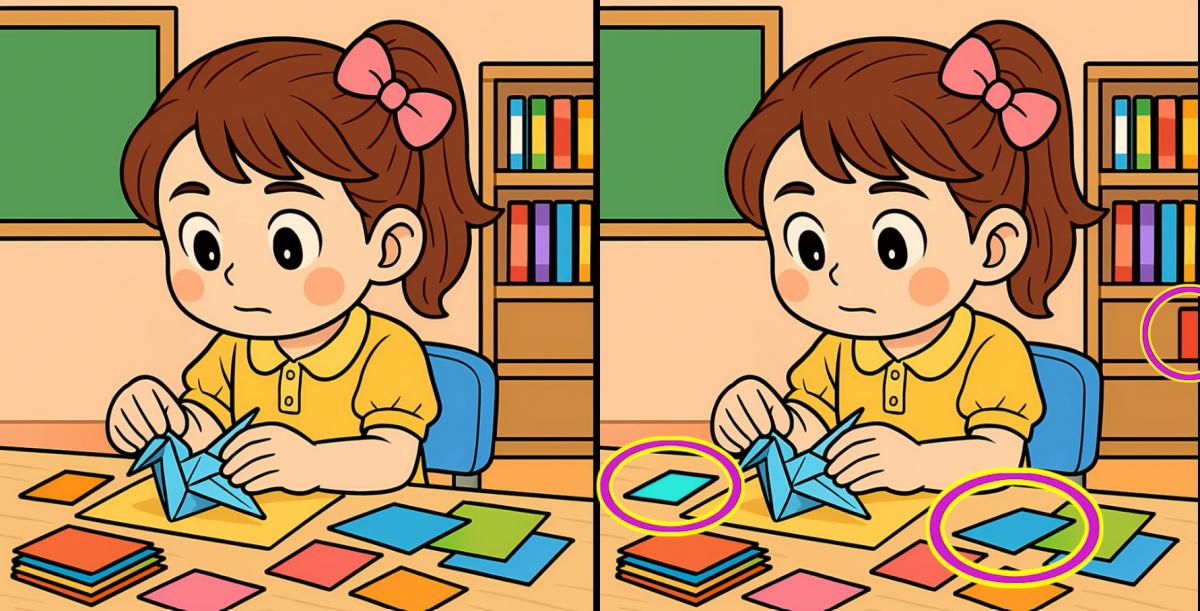 Așadar, ești pregătit pentru următoarea provocare? Uită-te atent la două imagini cu o fată care face păsări de hârtie. La prima vedere, ele pot părea la fel, dar există 3 mici diferențe. Crezi că le poți găsi pe toate în 19 secunde? Încearcă și testează-ți acuitatea viză!