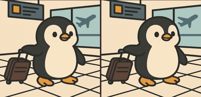 Așadar, ești pregătit pentru următoarea provocare? Uită-te atent la două imagini cu un pinguin drăguț care cară bagaje la aeroport. Ele pot părea identice la prima vedere, dar există 3 mici diferențe ascunse pe ele. Crezi că le poți găsi pe toate în 61 de secunde? Încearcă și testează-ți acuitatea viză!