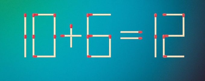 Mai jos veți vedea o imagine în care egalitatea 10+6=12 este prezentată folosind chibrituri. Evident, nu este corectă din punct de vedere matematic. Trebuie să o corectați.