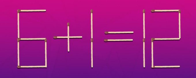 Astfel, mai jos veți vedea un colaj, în care egalitatea 6+1=12 este așezată cu ajutorul chibriturilor. Evident, aici există o greșeală, deoarece suma acestor numere este egală cu 7.