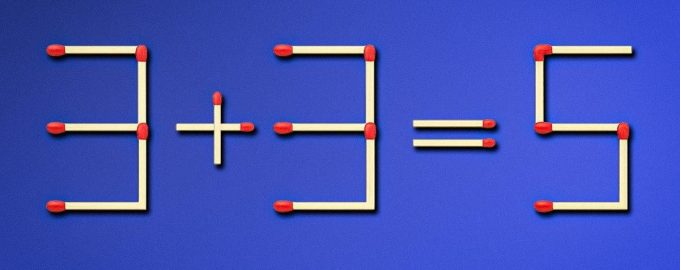 În fața ta se află o ecie incorectă formată din 19 chibrituri: 3 + 3 = 5. Evident, răspunsul este greșit. Pentru a-l corecta, trebuie să mutați un chibrit. La prima vedere, pare ușor, dar de fapt trebuie să vă forțați creierul pentru a găsi calea corectă.