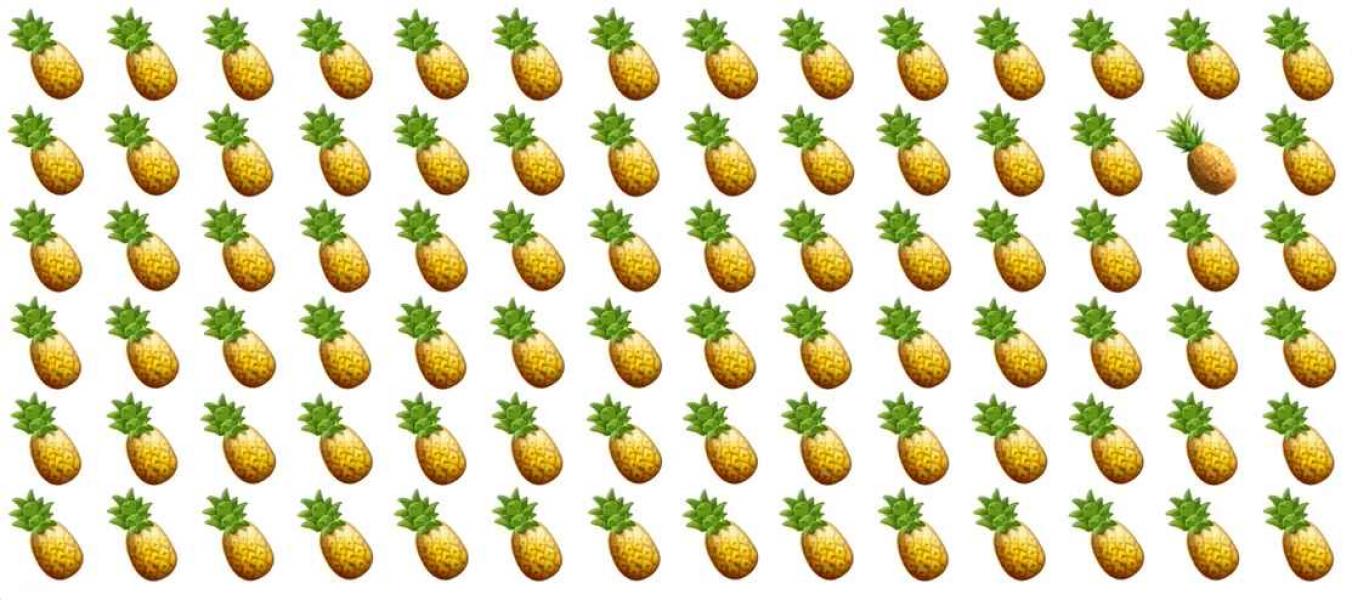 Rezolvă un puzzle simplu, dar foarte complicat – va trebui să găsești un ananas special, care este diferit de toate cele pe care le vezi în imagine.