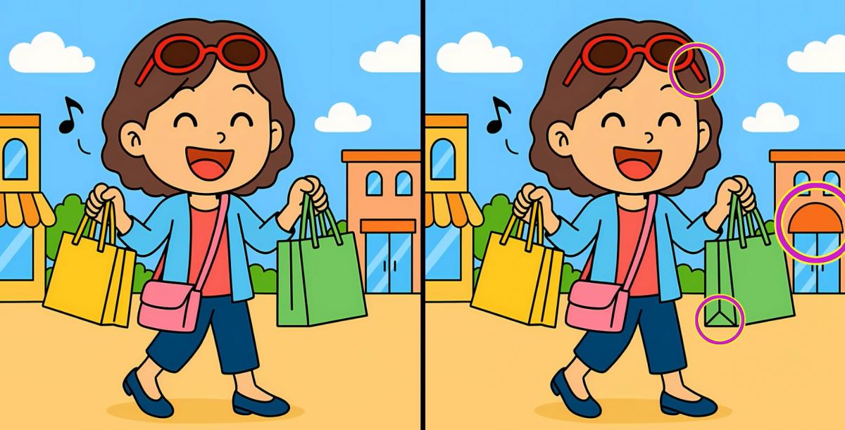 Așadar, ești pregătit pentru următoarea provocare? Uită-te atent la cele două imagini ale fetei cu sacoșele de cumpărături. Pot părea identice la prima vedere, dar există 3 mici diferențe. Crezi că le poți găsi pe toate în 71 de secunde? Încearcă și testează-ți acuitatea viză!