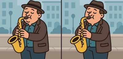 Așadar, ești pregătit pentru următoarea provocare? Uită-te atent la două imagini cu un bărbat care cântă la saxofon. Acestea pot părea identice la prima vedere, dar există 3 mici diferențe. Crezi că le poți găsi pe toate în 31 de secunde? Încearcă și testează-ți acuitatea viză!