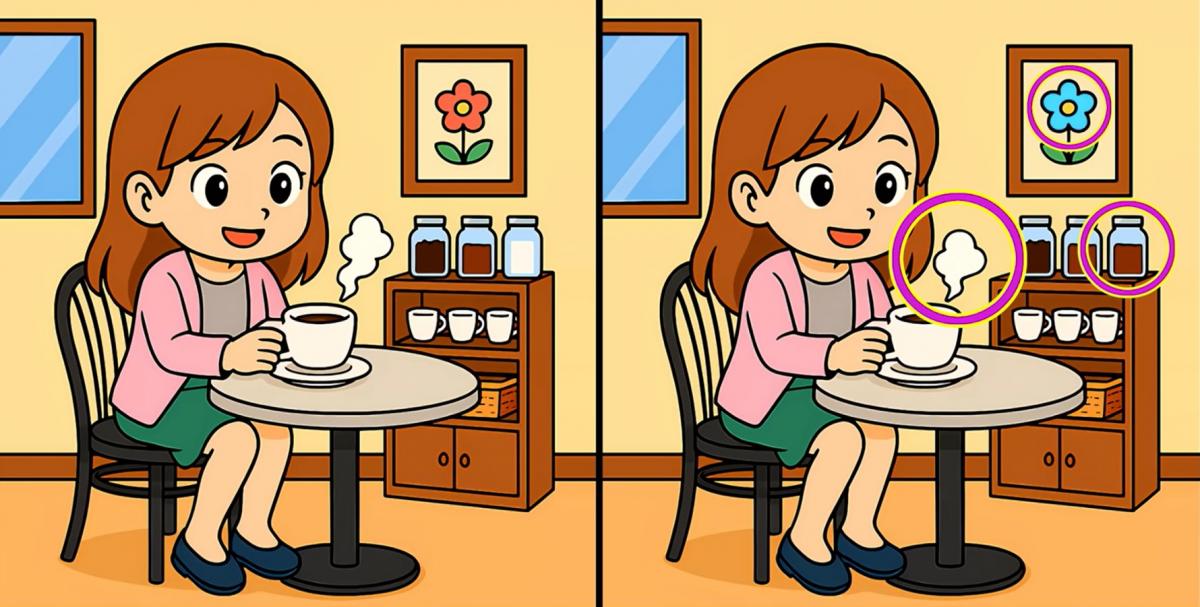 Deci, ești pregătit pentru următoarea sarcină? Uită-te atent la două imagini cu o fată care bea cafea. Ele pot părea identice la prima vedere, dar există 3 mici diferențe. Crezi că le poți găsi pe toate în 19 secunde? Încearcă și testează-ți acuitatea viză!